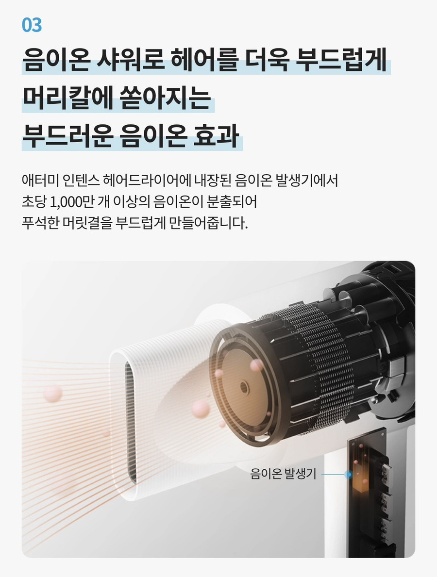 3️⃣ 음이온 샤워로 헤어를 더욱 부드럽게 머리칼에 쏟아지는 부드러운 음이온 효과