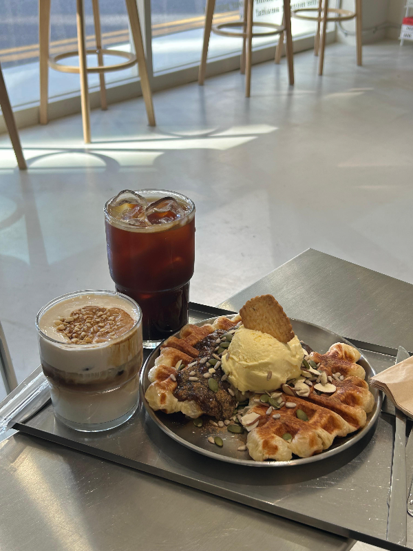 ✔️ 호떡 크로플 + 아이스 아메리카노 + 땅콩 카라멜 라떼